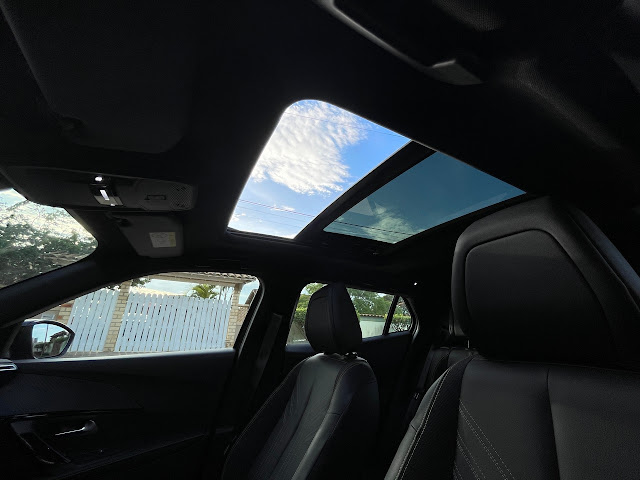 | Teto solar é do tipo panorâmico e pode ser aberto, mas a abertura é pequena. |
